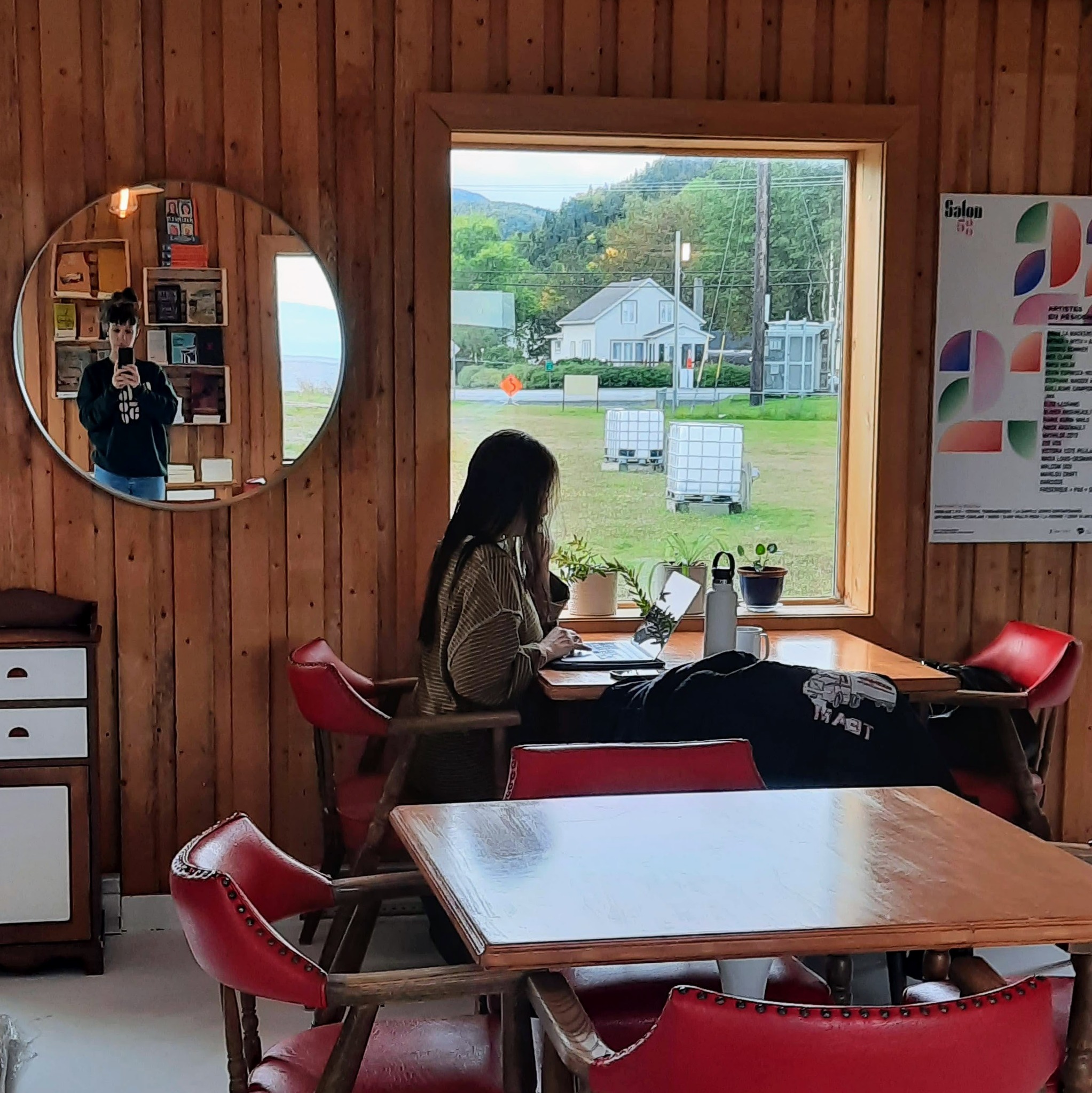 Ouvert selon des horaires variables, L’Hybride – café & librairie est situé sur la plage Henley de Marsoui et vous offre une gamme de services : menu simple et réconfortant, équipements de télétravail ergonomiques,