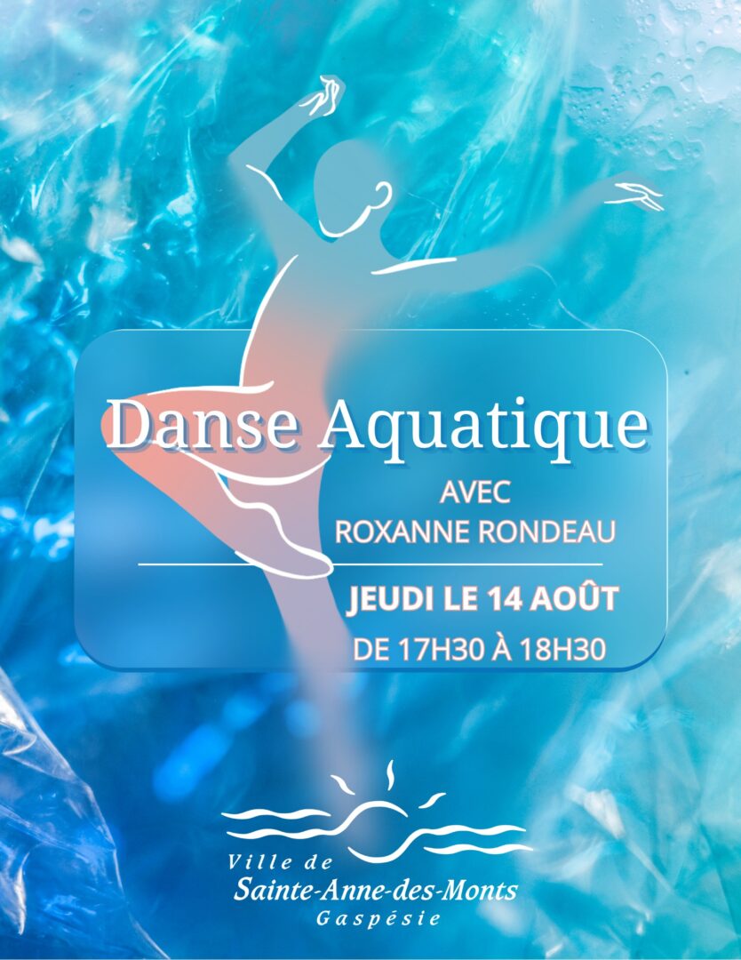The City of Sainte-Anne-des-Monts is pleased to offer a discovery aquatic dance session with Roxanne Rondeau! Come try this unique activity for free, combining fun, movement, and an aquatic atmosphere! A great opportunity to discover a new addition to our fall program.