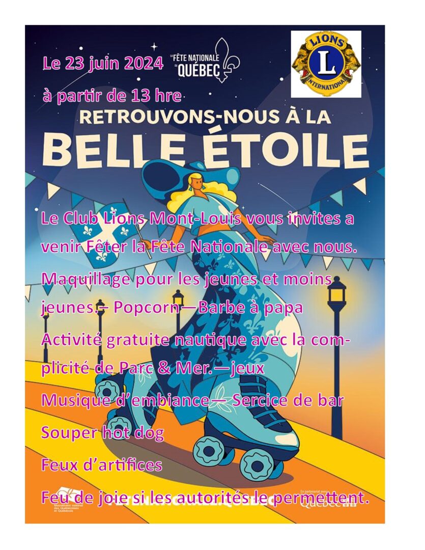 The Lion club of Mont-Louis invites you to come celebrate the national holiday with us. Makeup for young and old, popcorn, cotton candy. Free water activities with the complicity of Parc et Mer. Games, ambient music, bar service and hot dog dinner. Fireworks and bonfires if conditions permit.
