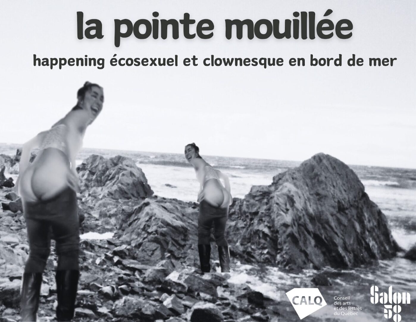 A happening by the sea, an open-air artistic event bringing together four multidisciplinary artists: Laurence Lallier-Roussin (Haute-Gaspésie), Caro Morcos (Montreal), Audrée Lewka and Dylan Lafontaine (Bas-Saint-Laurent). This is an immersive outdoor experience to connect with the seaside. From a meeting point on the beach, the public will be invited to enter the universe created by the artists and will be guided through different experiences and performances in situ. The event has a participatory dimension and the public could be invited to join in the game. The creative team is inspired by the ecosensual approach, that is to say the development of an intimate relationship with nature, based on the senses and sensations, as well as the clownish approach: we don’t take ourselves seriously, we make mistakes, we are ridiculous. This happening takes place at the end of a 5-day creative residency by the artists, immersed in the natural environment of Marsoui beach. Rain or shine, artists encounter the seaside, its species, its tides and its waste to find inspiration. This is an inclusive and accessible event where everyone is welcome.