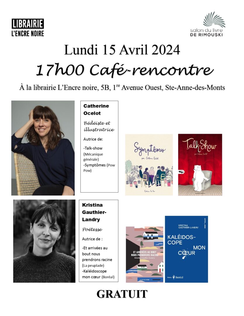 Venez rencontrer deux autrices à la librairie. Catherine Ocelot bédéiste et Kristina Gauthier-Landry poétesse. Un rendez-vous à ne pas manquer! L’activité est gratuite.