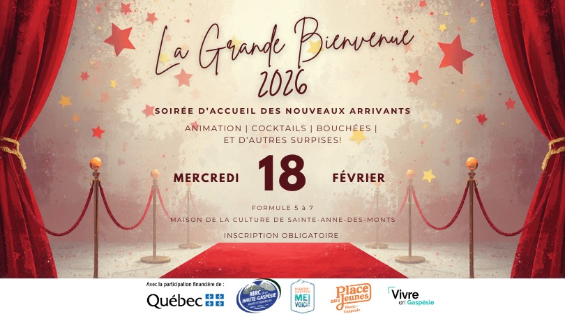 Rendez-vous à la Maison de la Culture de Sainte-Anne-des-Monts, de 17 h à 19 h, pour une soirée ponctuée de moments symboliques, de belles rencontres et de surprises. Que vous soyez arrivé(e) seul(e), en couple ou en famille, vous êtes invité(e) à vivre une expérience conviviale où la diversité des parcours est mise à l’honneur.