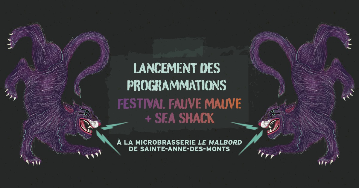Jeudi le 25 avril 2024, joignez-vous à nous à La Microbrasserie Le Malbord pour un 5 à 7 d’exception alors que nous célébrons deux événements majeurs: le lancement de la programmation de la 2e édition tant attendue du Festival Fauve Mauve et de celle du 20e anniversaire de l’Auberge Festive Sea Shack.