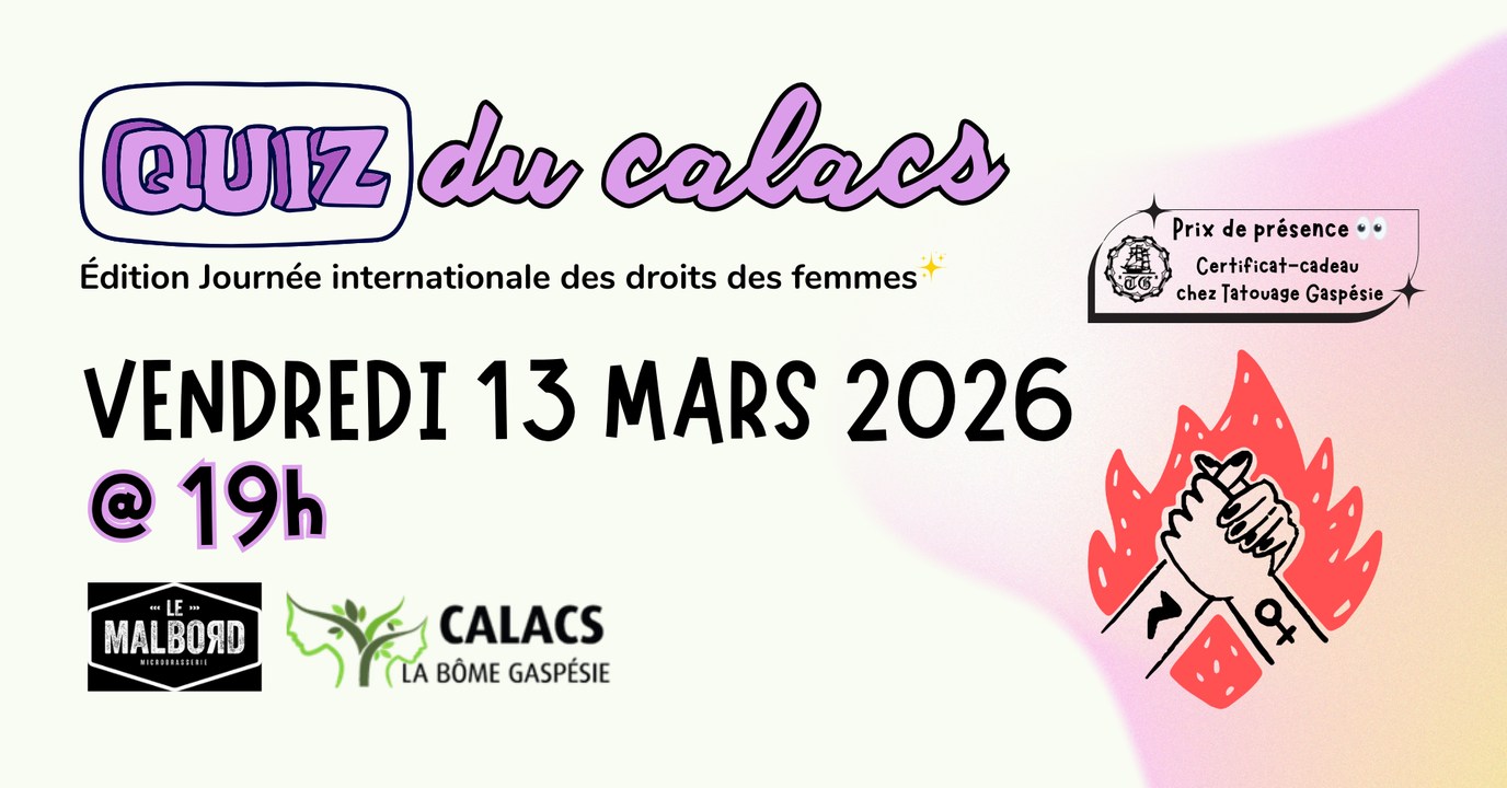 La soirée sera animée par l’équipe du CALACS La Bôme Gaspésie.