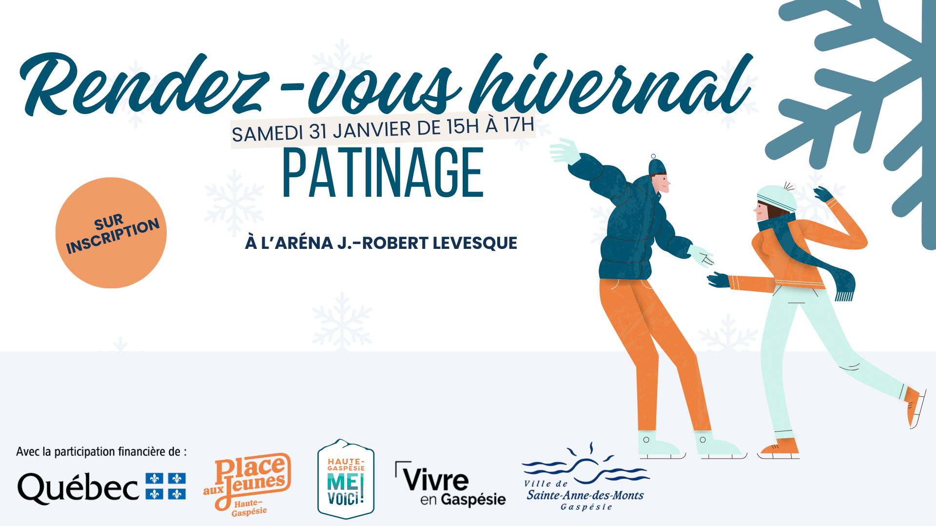 Cette année, notre célèbre rendez-vous hivernal se réinvente ! Rendez-vous le samedi 31 janvier à 15 h, à l’aréna de Sainte-Anne-des-Monts, pour 2 heures de patinage festif et convivial. Si tu n'as pas de patins, pas de panique !...